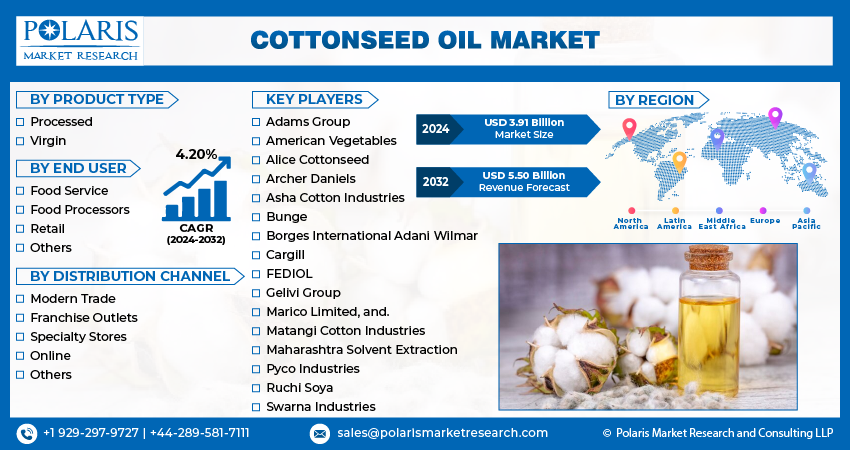 Cottonseed Oil Market is projected to reach $5.50 billion by 2032, growing at a CAGR of 4.20%