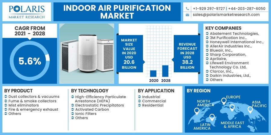 The globalΒ indoor air purification Β size is expected to reach USD 38.21 billion by 2028 according to a new study by Polaris Market Research.