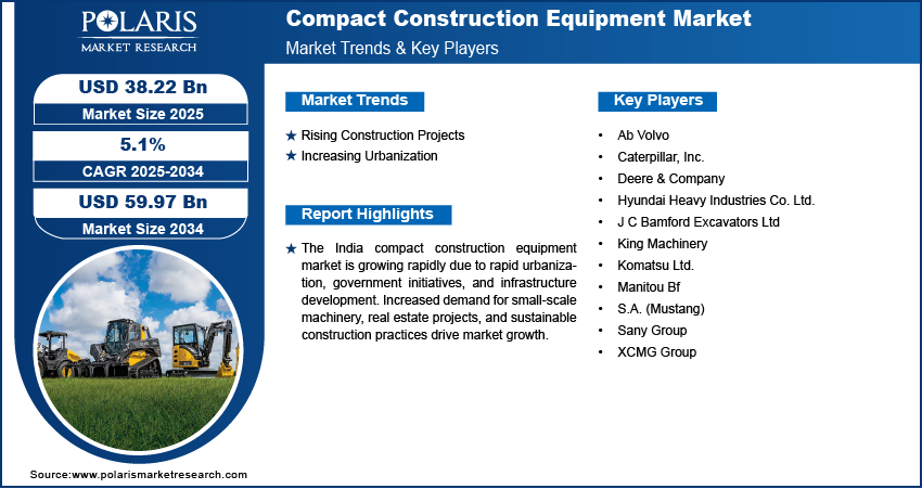 Compact Construction Equipment Market Projected to Reach USD 59.97 Billion by 2034, Growing at a CAGR of 5.1%
