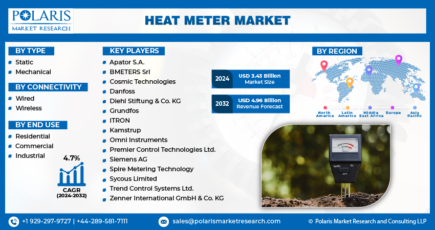Heat Meter Market estimated to achieve $4.96 billion by 2032, growing at a CAGR of 4.7%.