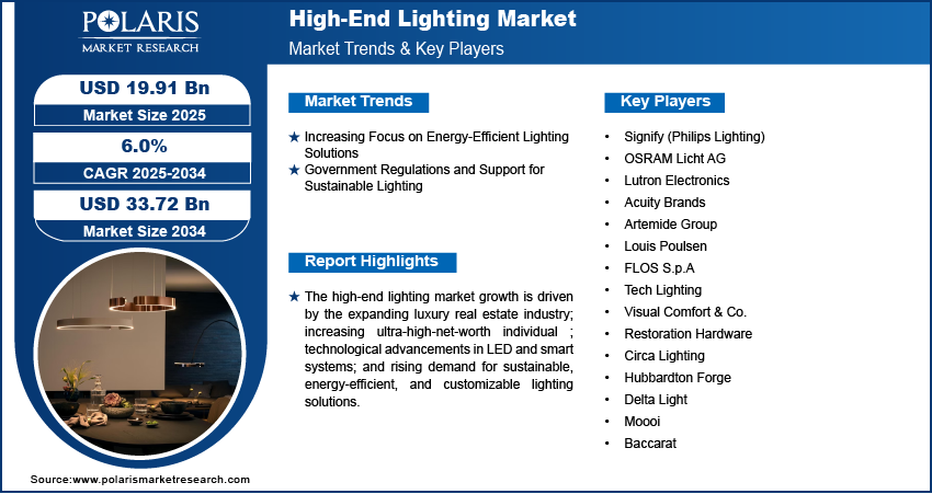 High-End Lighting Market Valued at USD 33.72 Billion by 2034 | CAGR: 6.0%