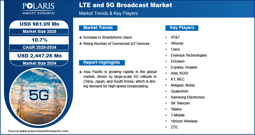 LTE and 5G Broadcast Market is anticipated to expand from $1.0 billion in 2024 to $2.1 billion by 2034