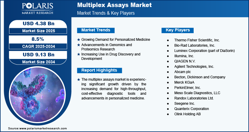 Multiplex Assays Market Projected to Reach USD 9.13 Billion by 2034, Expanding at a CAGR of 8.5%