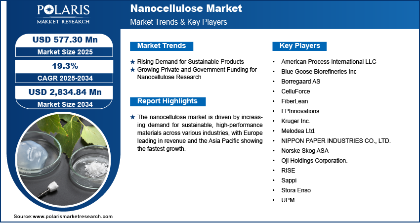 Nanocellulose Market to Reach USD 2,834.84 Million by 2034 | CAGR: 19.3%