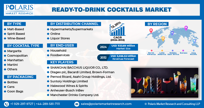 Ready-to-Drink Cocktails Market to Reach $3,066.52 Million by 2032, Growing at a CAGR of 13.2%